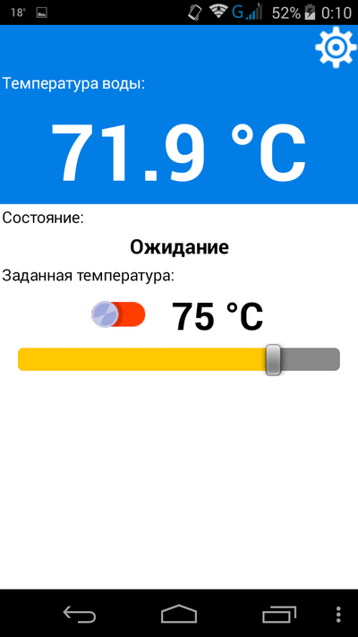 Для мониторинга и настройки термостата с помощью MIT App Inventor было написано приложение для Android:
