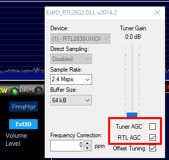 Теперь рекомендую поэкспериментировать с настройками усиления RTL. Для этого нажимаем кнопку «ExtIO»: