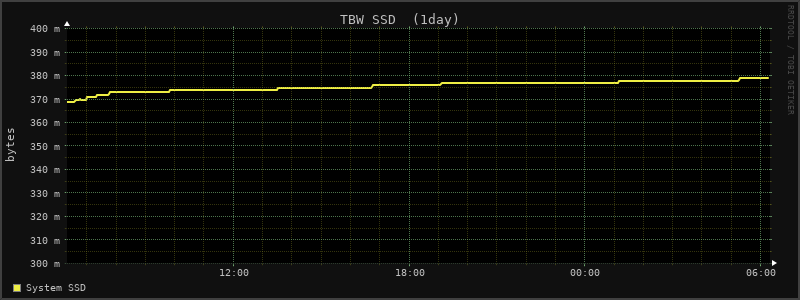 Я уже писал про использование системы Monitorix и как можно получить в терминале Linux объём записанных данных на SSD накопитель. Теперь нужно объединить всё это в одно целое и добавить в систему мониторинга график изменения данного значения.