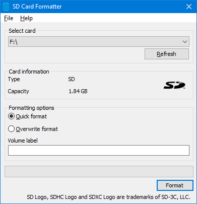 Для правильного форматирования SD карт SD Association выпустило специальную утилиту: SD Memory Card Formatter. Скачать её можно по ссылке на официальном сайте.