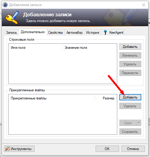 На вкладке «Дополнительно» добавляем файл приватного ключа.