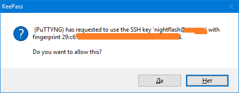 Теперь при каждой попытке авторизации с помощью ключей будет выдаваться запрос на разрешение: